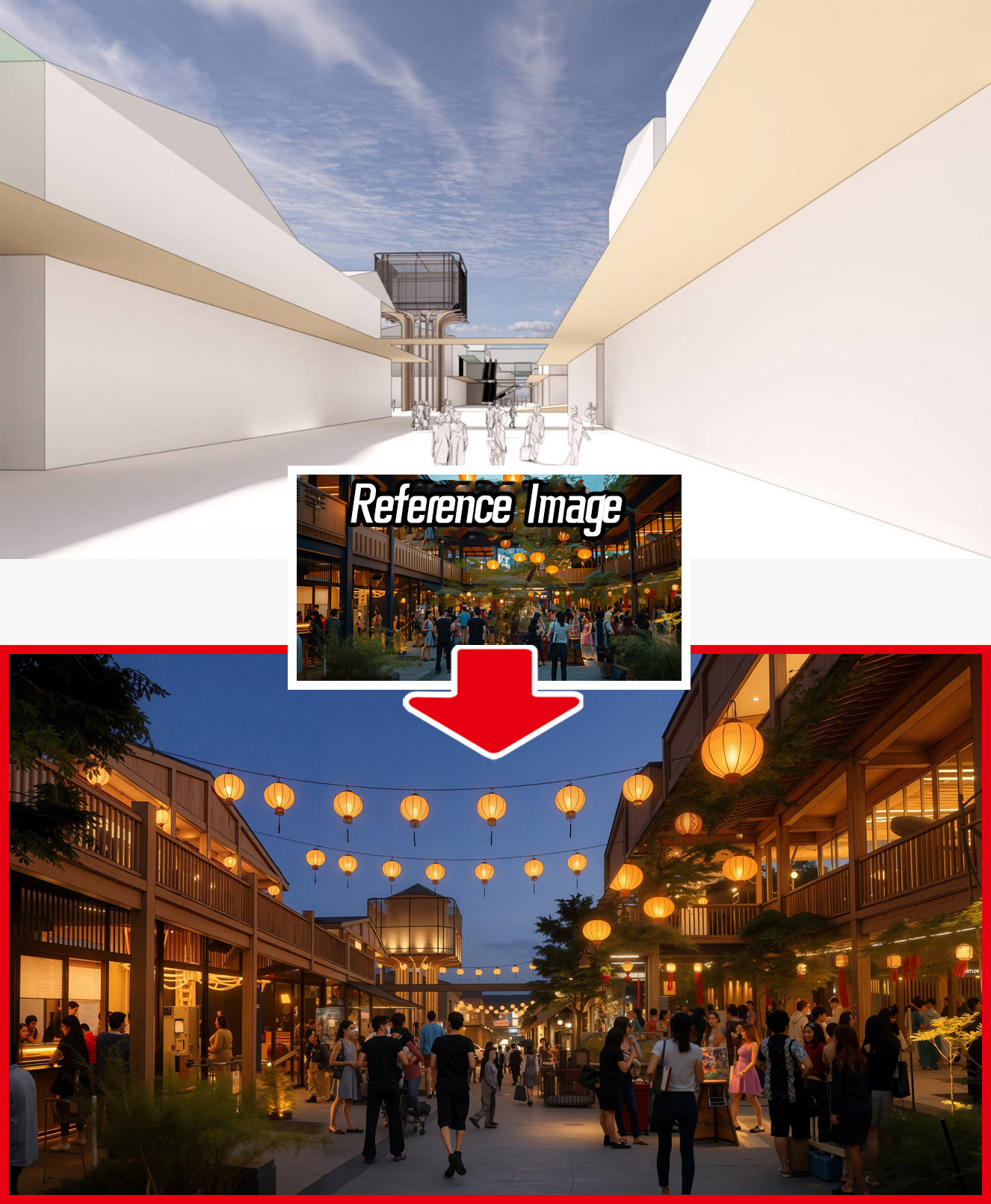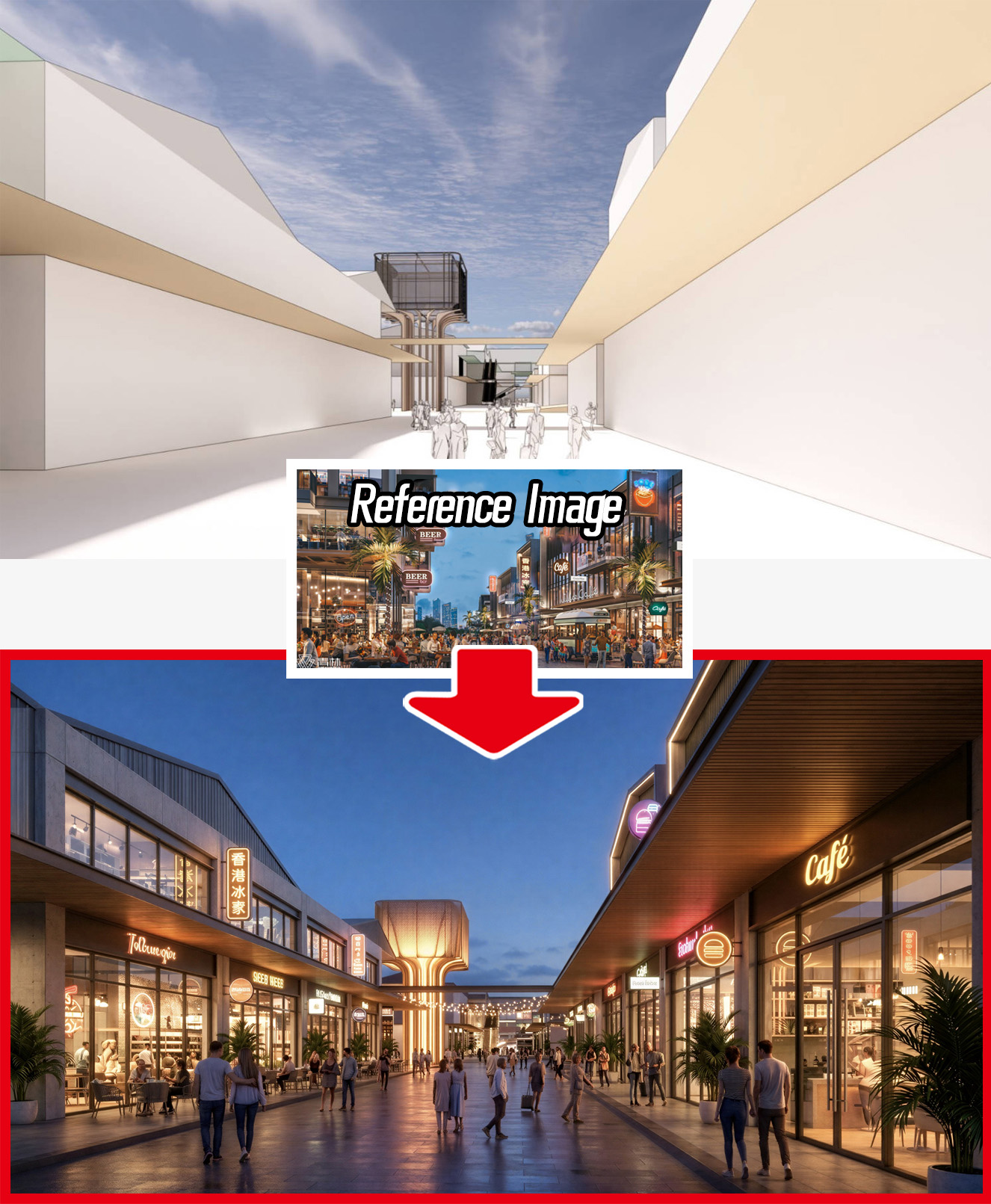 The reference image function has been comprehensively upgraded! In addition to full-scene referencing, it now supports local referencing, with more diverse content options: you can reference overall style, individually reference building facades, reference mood and color tones... Flexibility is enhanced! Results are even better!