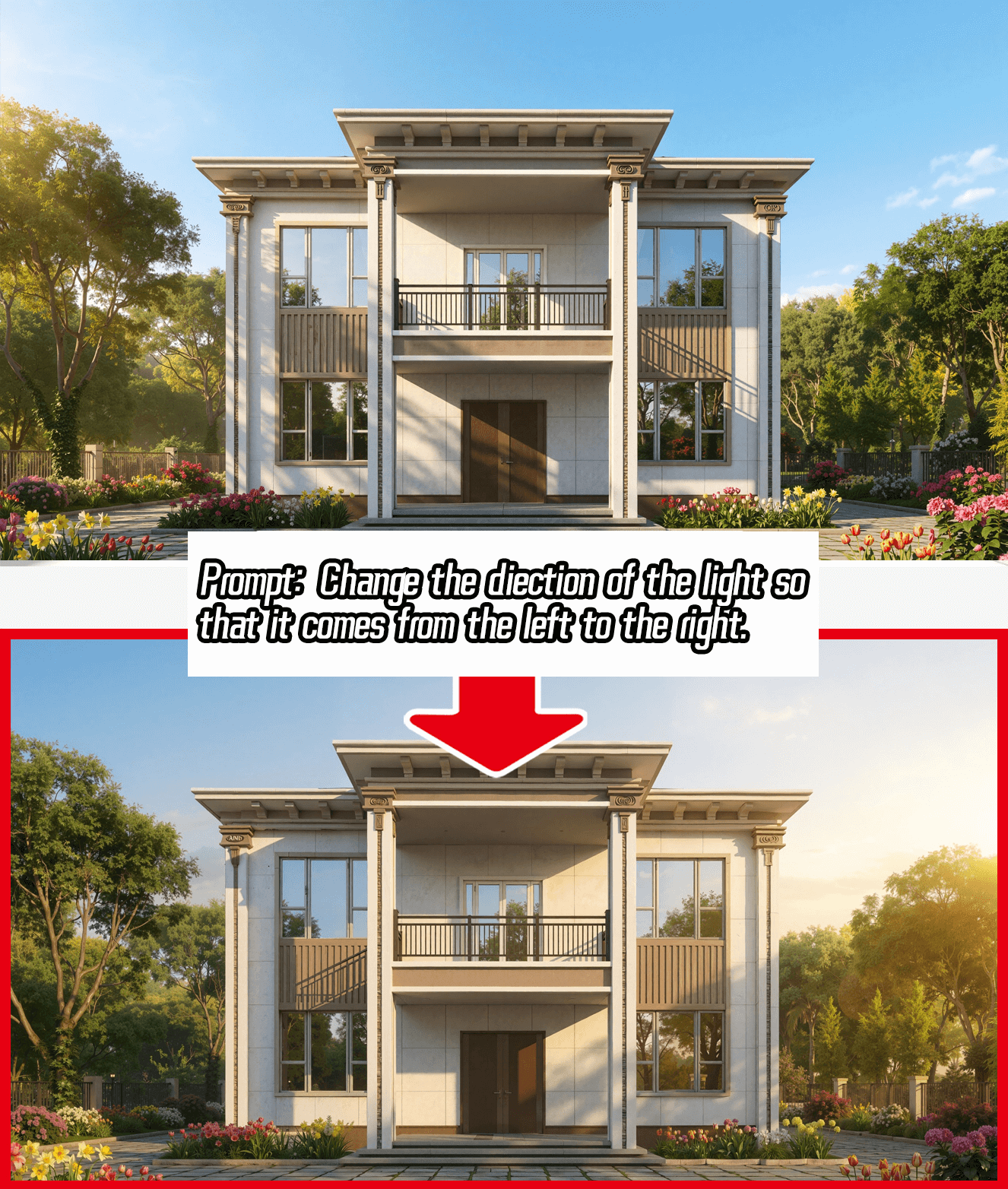 ③ Enter prompt words — for example, to change the light direction, input: Change the direction of the light so that it comes from the left to the right.