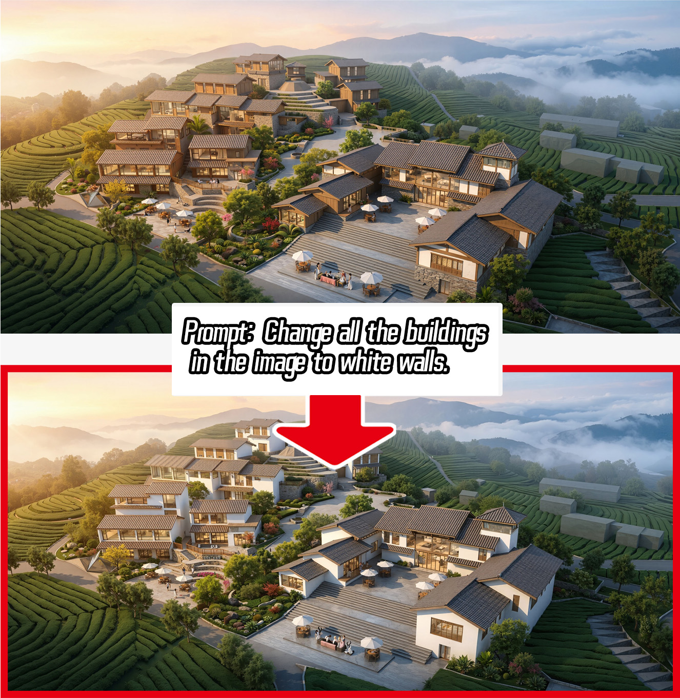 Keyword comprehension ability has been further enhanced! Previously, modifying detailed aspects of the scene was difficult, but now you can make changes simply by typing text! For example, you can adjust the direction of lighting, or replace the facade material of buildings in an aerial view. Editing is more precise! Results are more realistic!