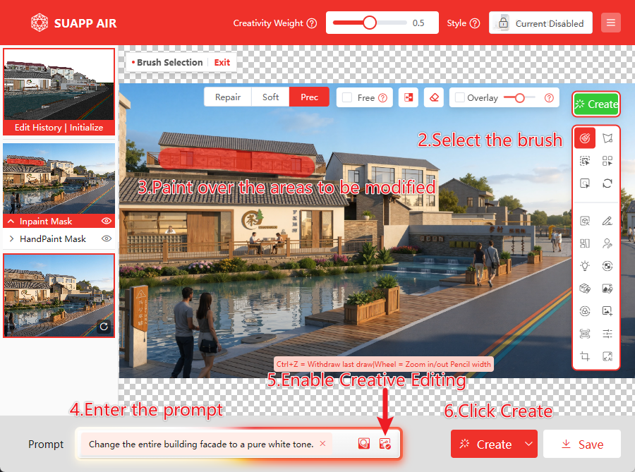 When some details in the scene are hard to describe with words, you can use local masking together with Creative Editing. The upgraded local masking makes edits smarter and recognizes the painted areas in the image more accurately.