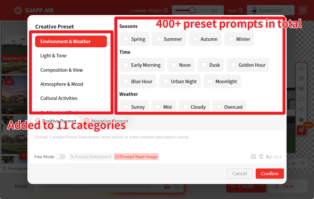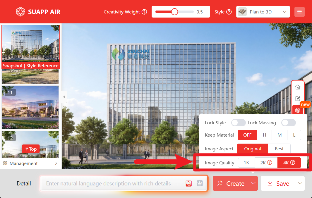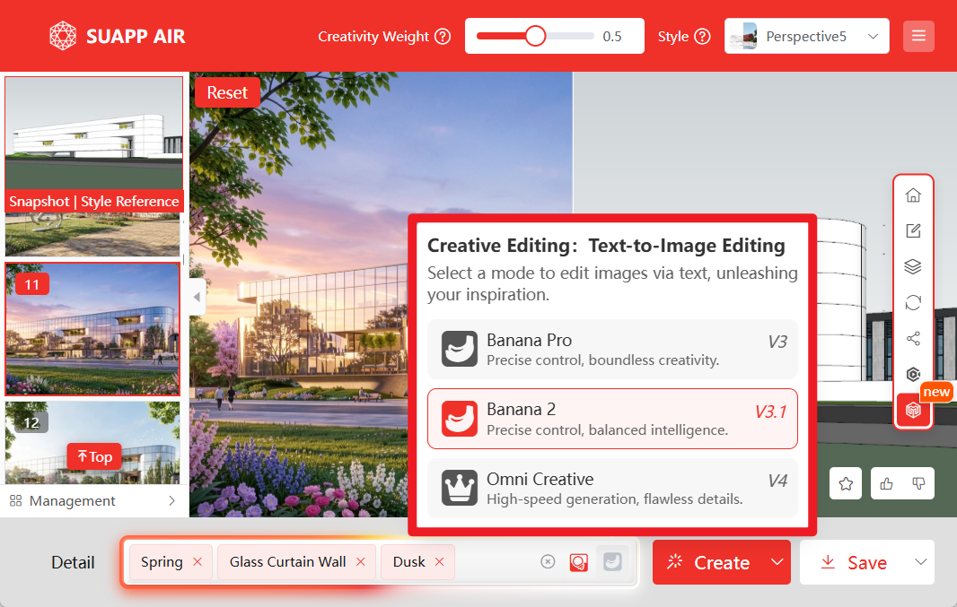 Creativity (Unleashed Potential): Utilizes our proprietary high-quality model to maximize generative potential. Perfect for breaking conventions and exploring new materials or lighting effects rapidly.