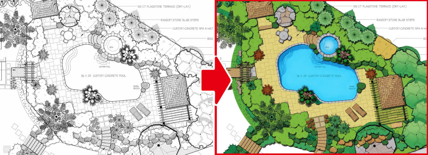 Tired of spending hours coloring in Photoshop? Now you can import your CAD line drawings directly into SUAPP AIR, choose a color scheme for your site plan, and get a full-color plan in seconds — with clear terrain details and with a variety of styles to choose from!