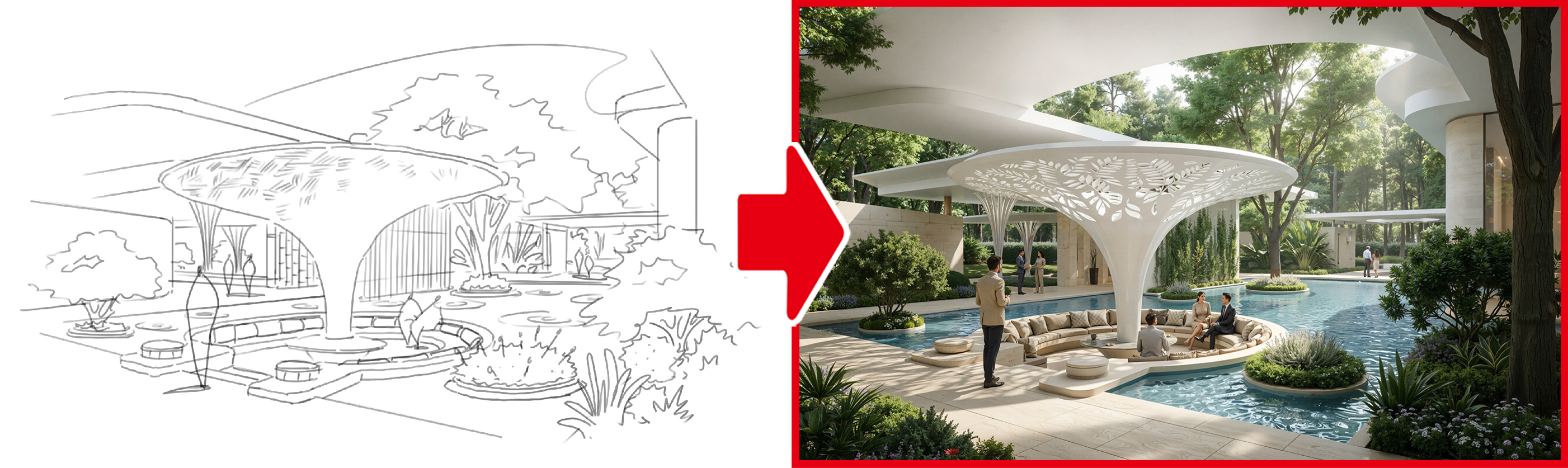 Got a quick creative sketch and want to show the client the vision fast? No need to model. Just upload your sketch to SUAPP AIR and turn it into a realistic rendering instantly. Visualize your ideas in moments — streamlining client communication and accelerating your creative process.