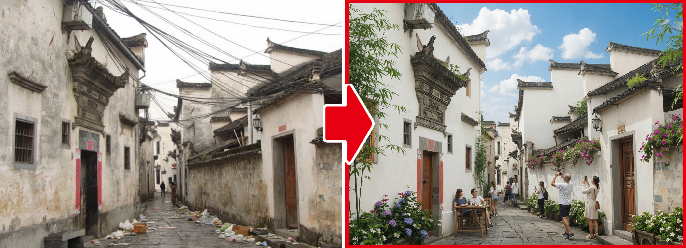Maintain the existing building structure — just refresh the exterior walls, repave the roads, and add interactive leisure landscapes. Balancing preservation with renovation.