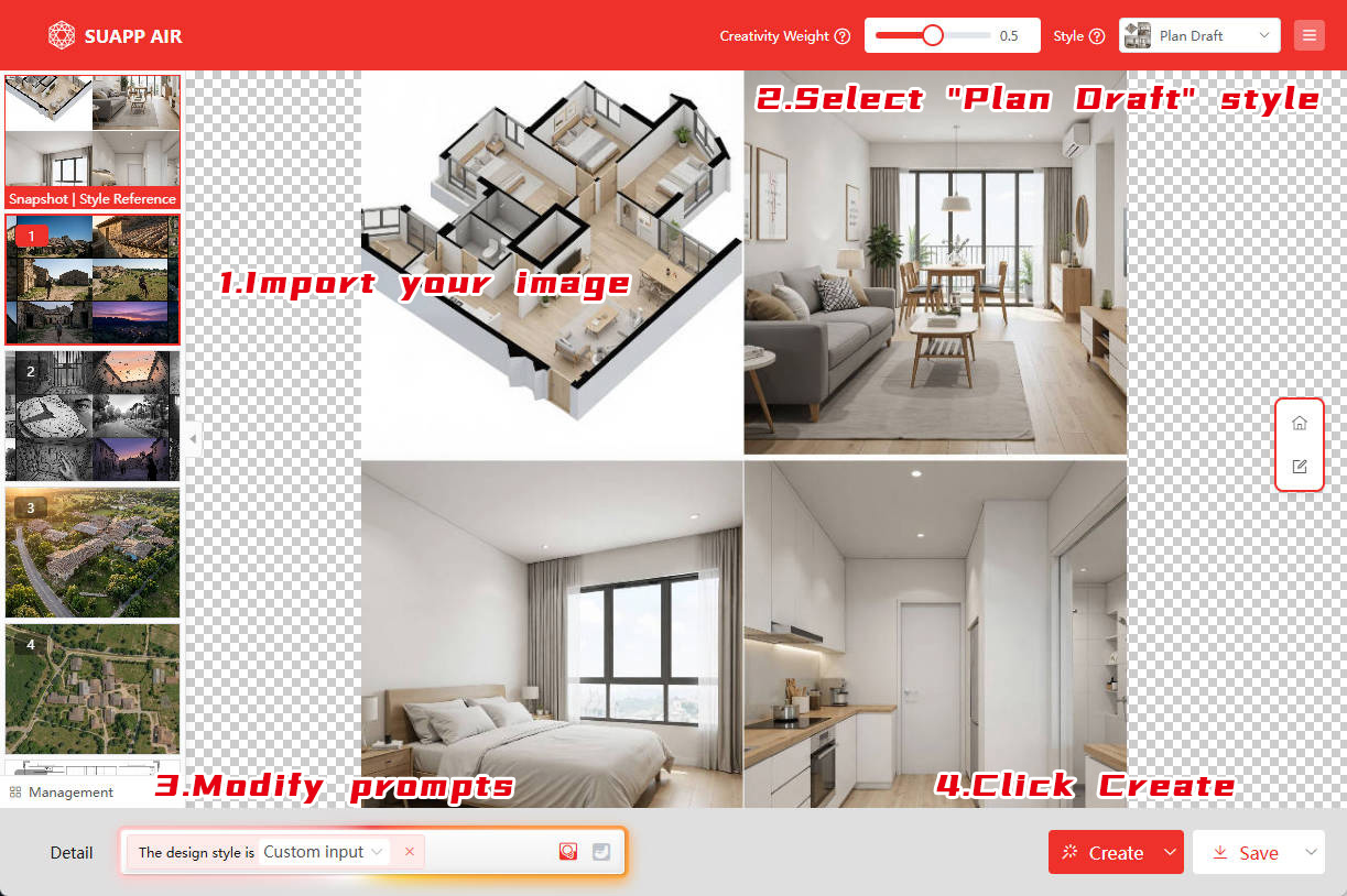 ② Select "Lingxi V2 - Smart Edit - Interior Design - Plan Draft" style